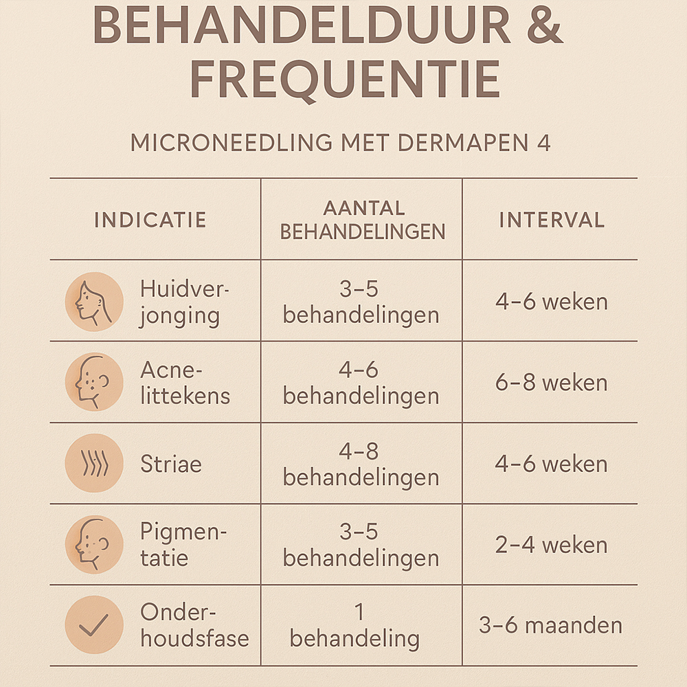 Voor het beste resultaat wordt een kuur van meerdere behandelingen geadviseerd, afgestemd op jouw huidconditie en doelen. Tijdens een intakegesprek stellen we samen een persoonlijk behandelplan op.